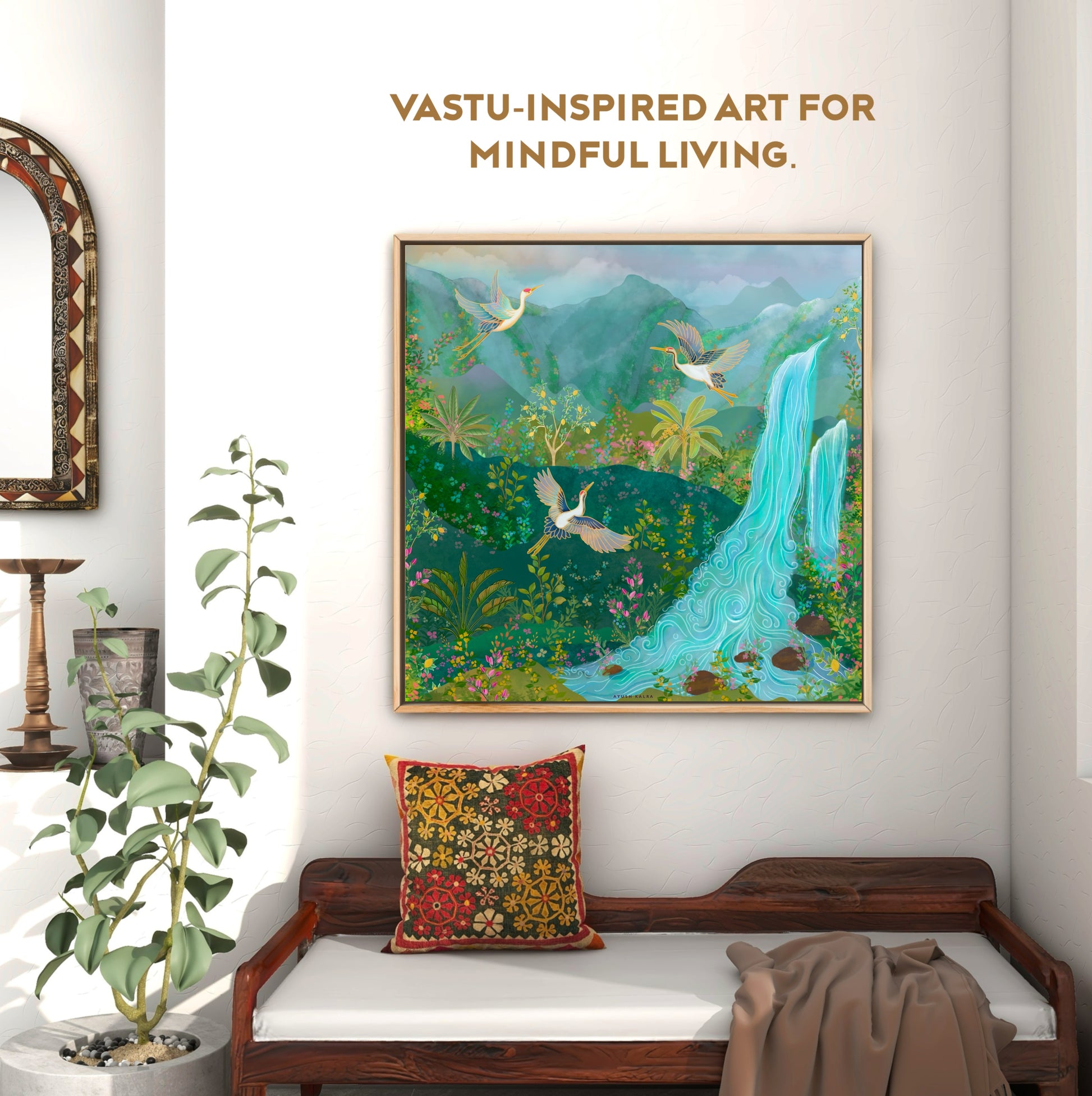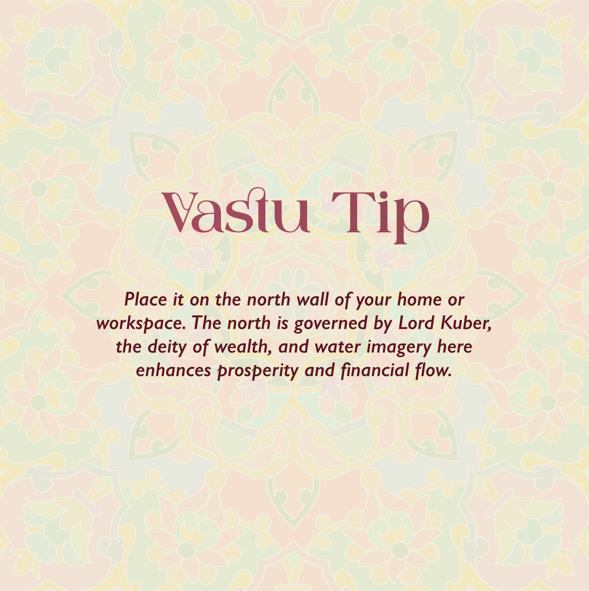 Vastu Tip: Place it on the north wall of your home or workspace. The north is governed by Lord Kuber, the deity of wealth, and water imagery here enhances prosperity and financial flow.