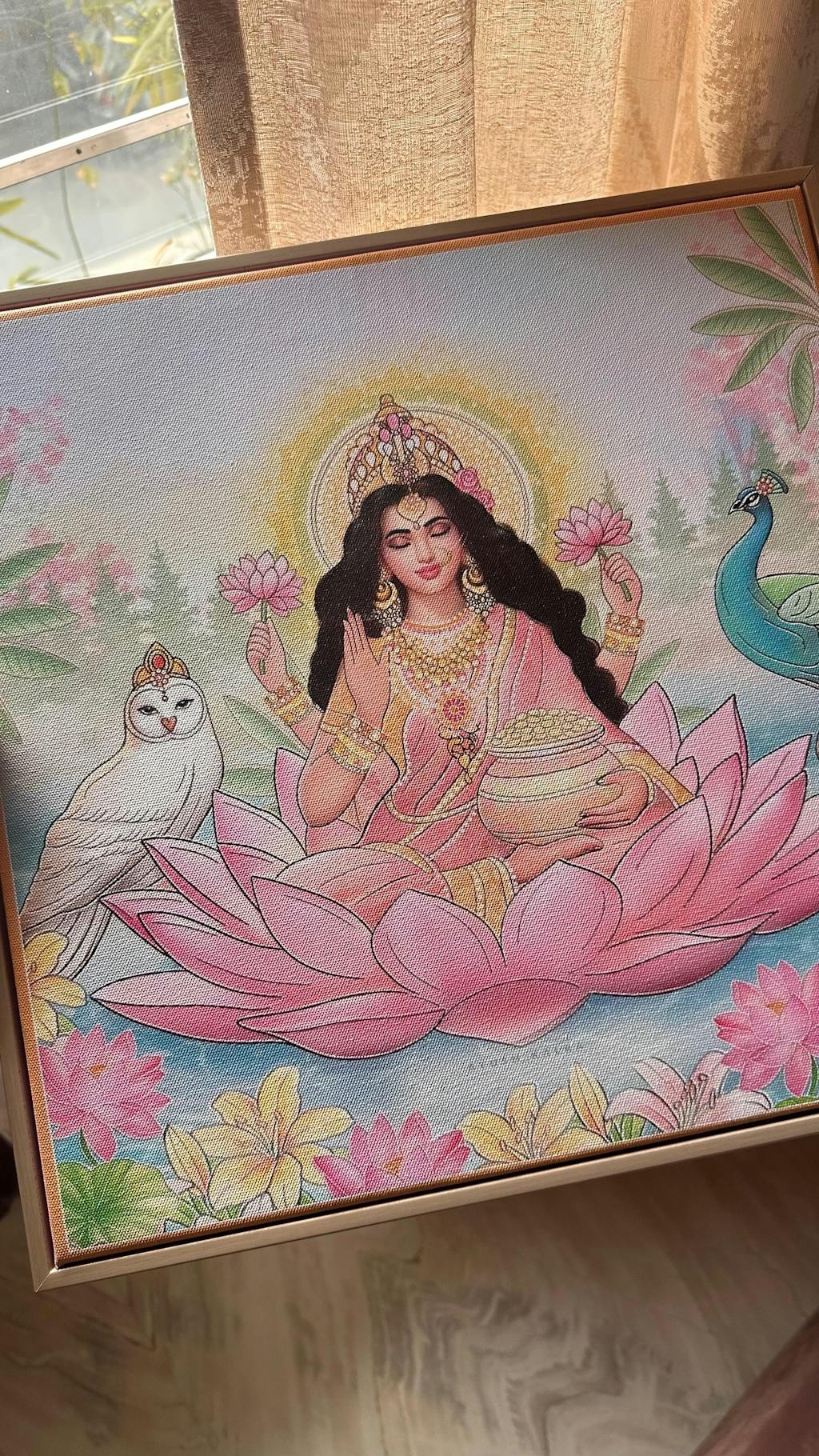 Abundant blessings flow from Lakshmi's loving presence. This vibrant artwork embodies prosperity, wealth, and happiness, transforming your space into a haven of divine abundance.